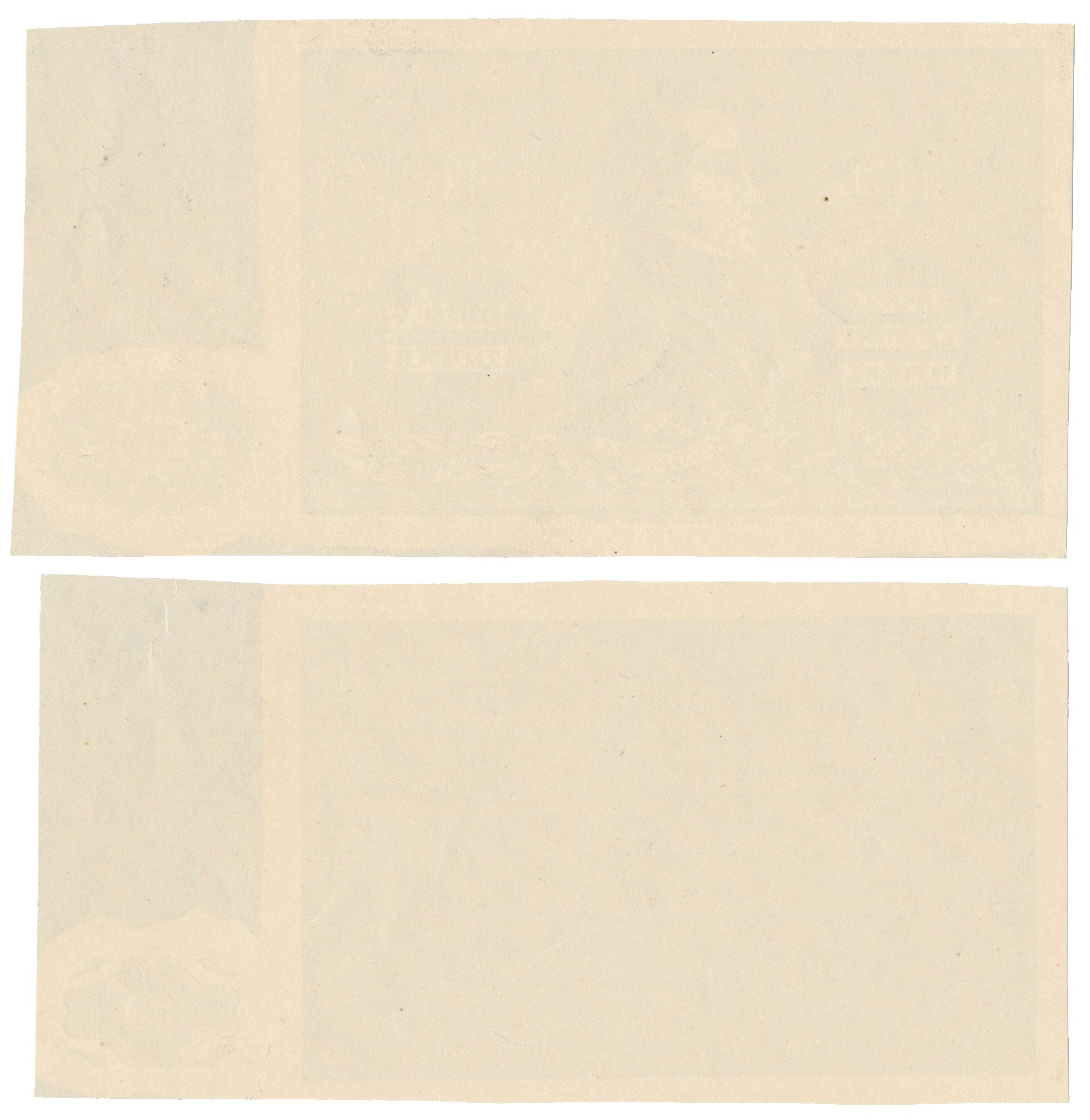 Dotychczas, na polskim rynku aukcyjnym, banknot 10 złotych 1941 znany był jedynie ze szkiców na kalkach z wklejanymi giloszami. W formie druku, czyli wskazującej na bardziej zaawansowany etap prac, niż tylko projekty autora, notowany jest on po raz pierwszy.