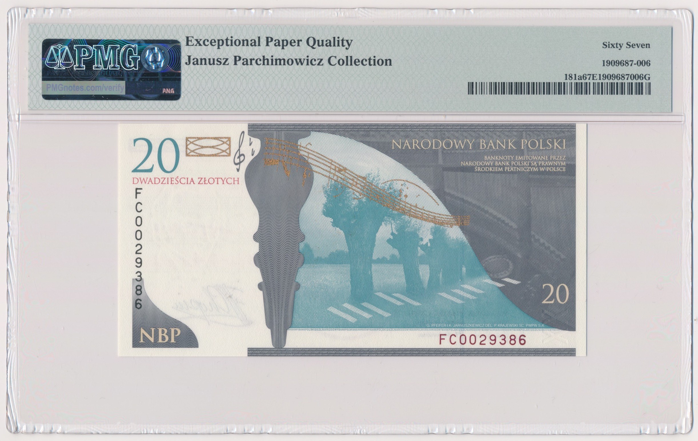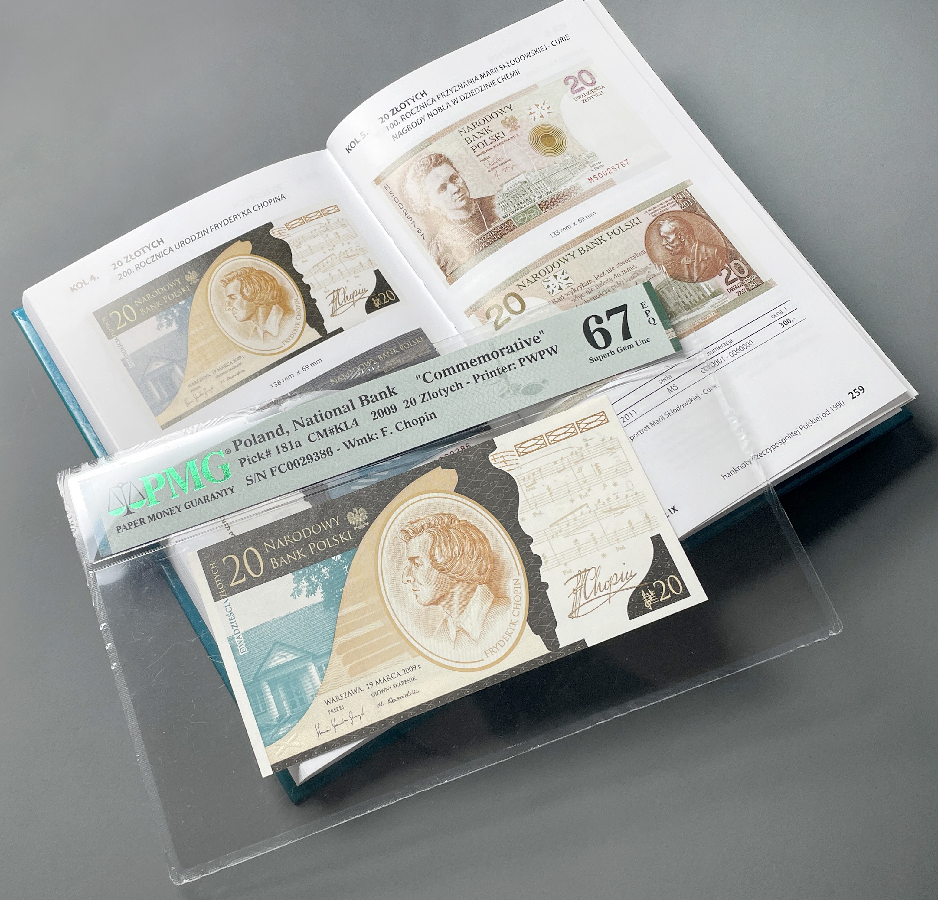 Banknot obecnie w gradingu PMG z zaznaczonym na etykiecie pochodzeniem ex. Parchimowicz.