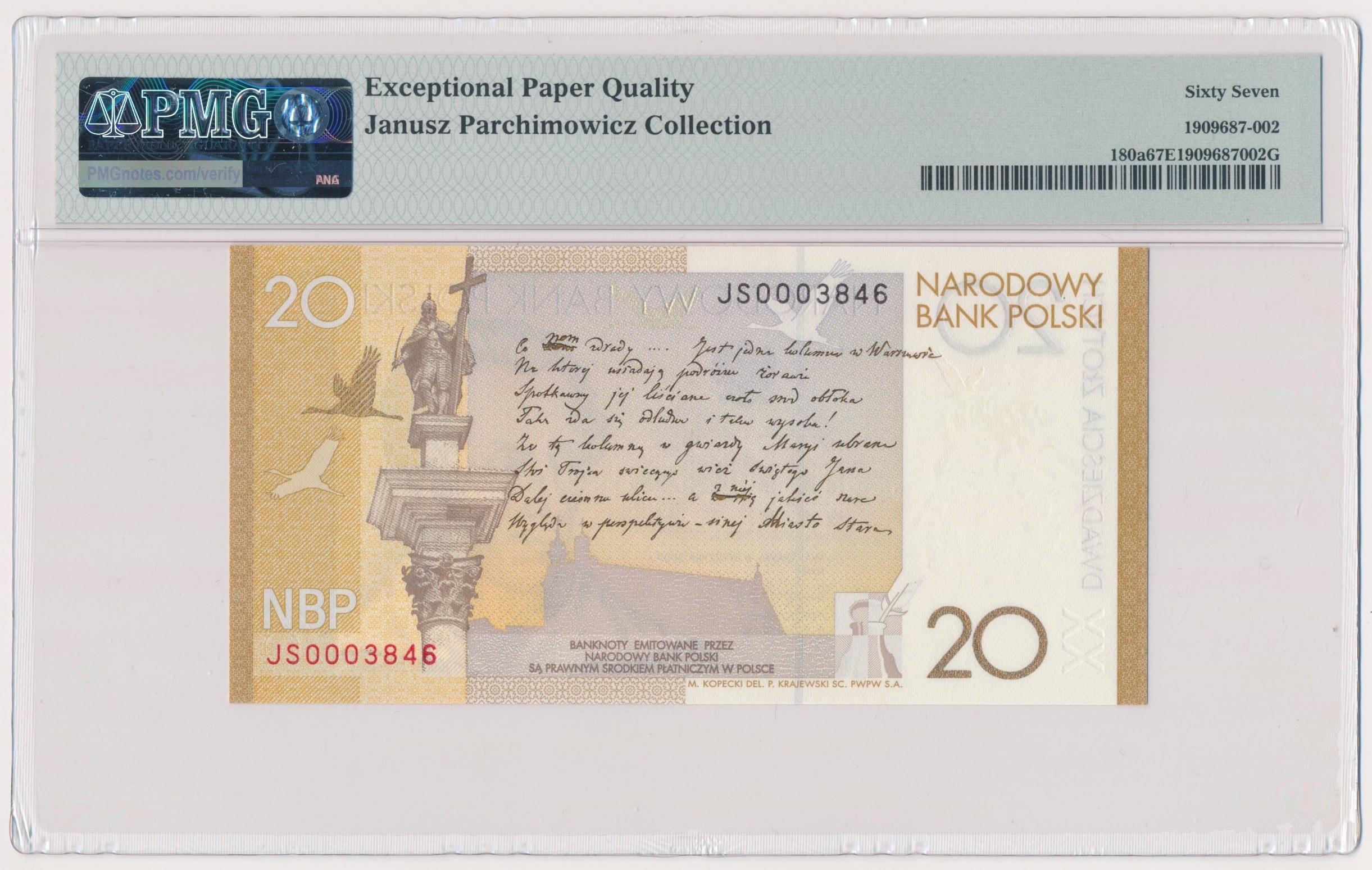 Banknot obecnie w gradingu PMG z zaznaczonym na etykiecie pochodzeniem ex. Parchimowicz.