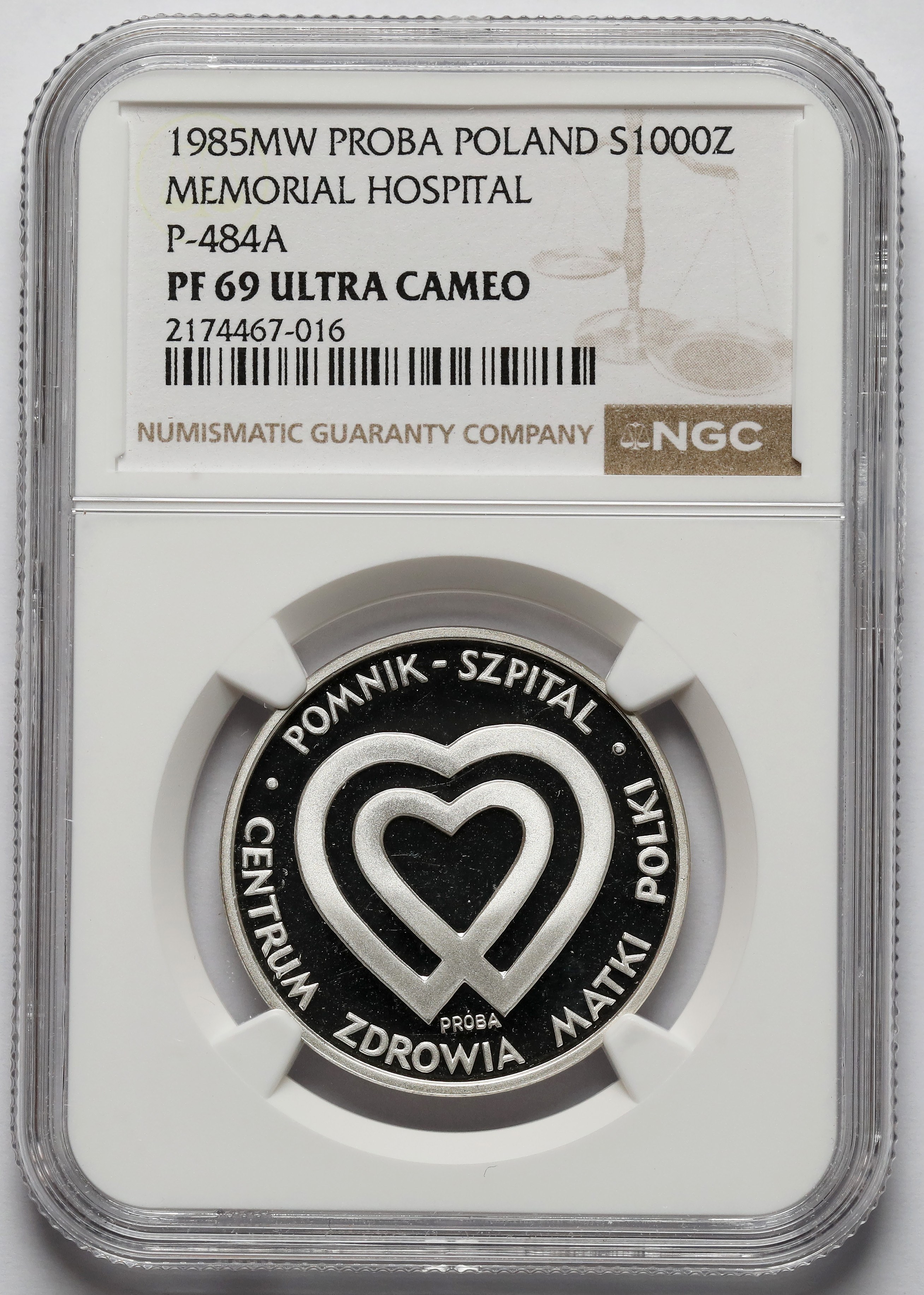 Próba SREBRO 1.000 złotych 1985 Pomnik Szpital