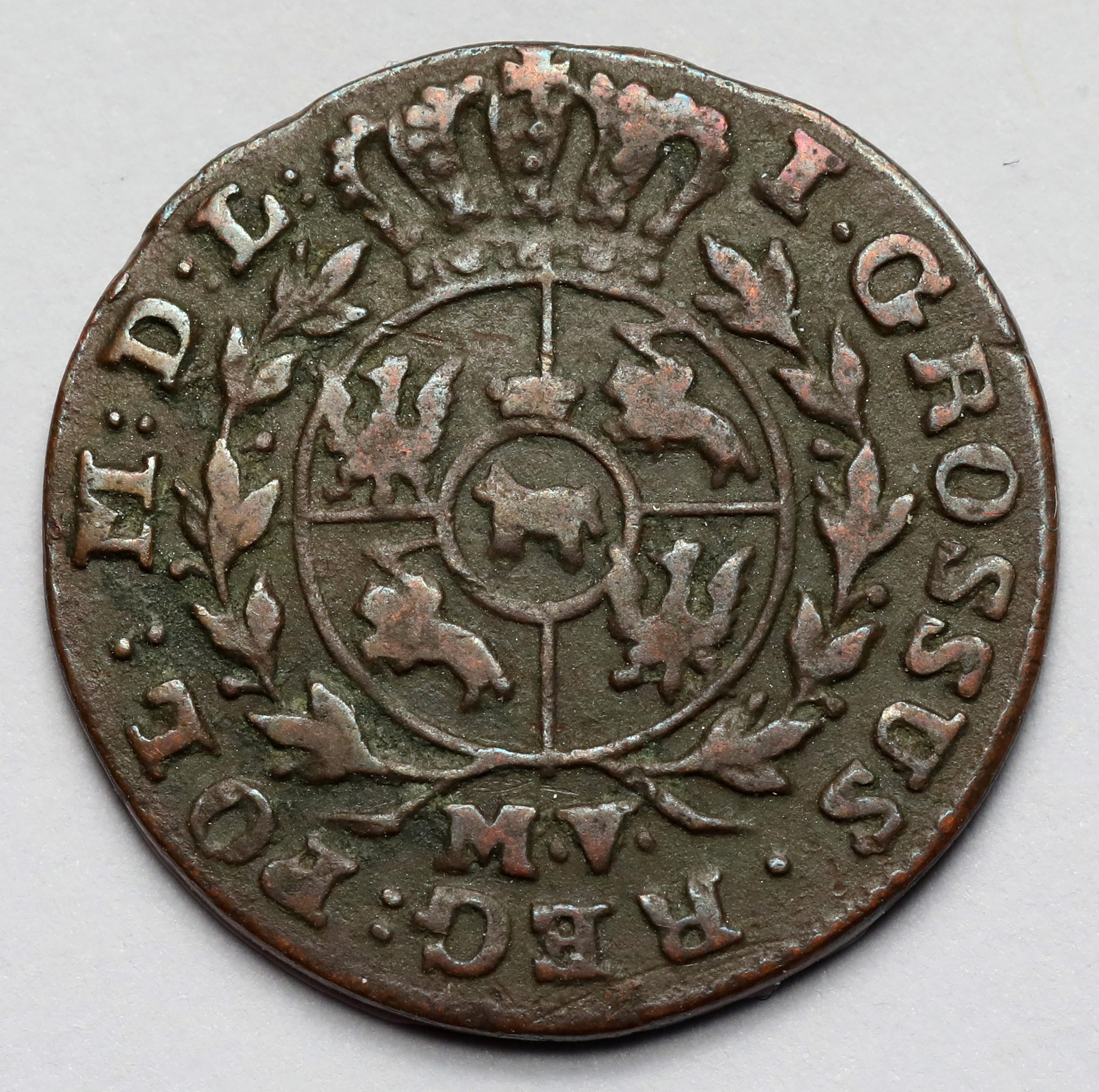 Varietà con le lettere M.V. (Zecca di Varsavia) nella parte inferiore del rovescio.