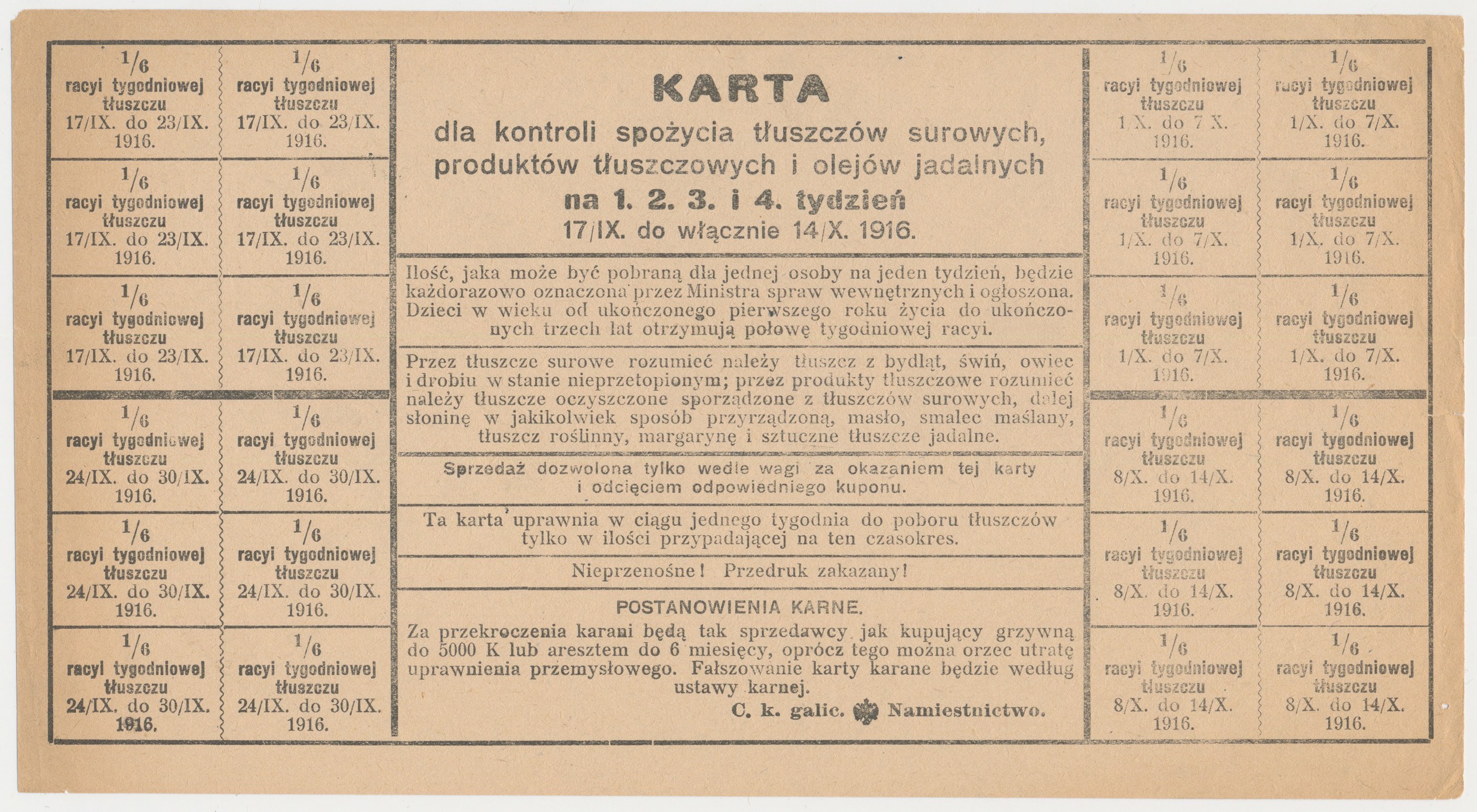 Galicja, Karta kontroli spożycia tłuszczów... 1916