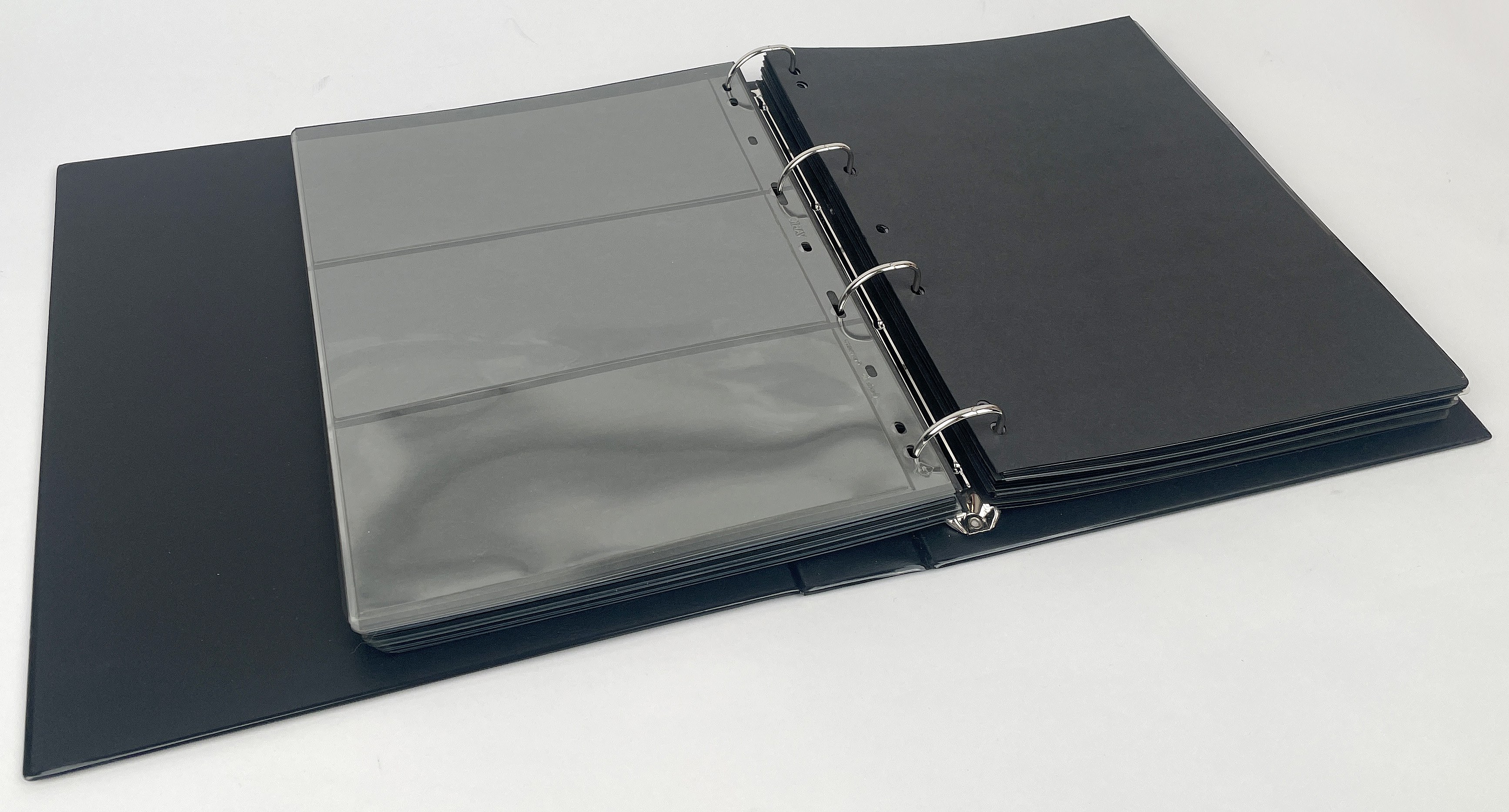 Wewnątrz 54 karty dzielone na 3, z czarnymi przekładkami.