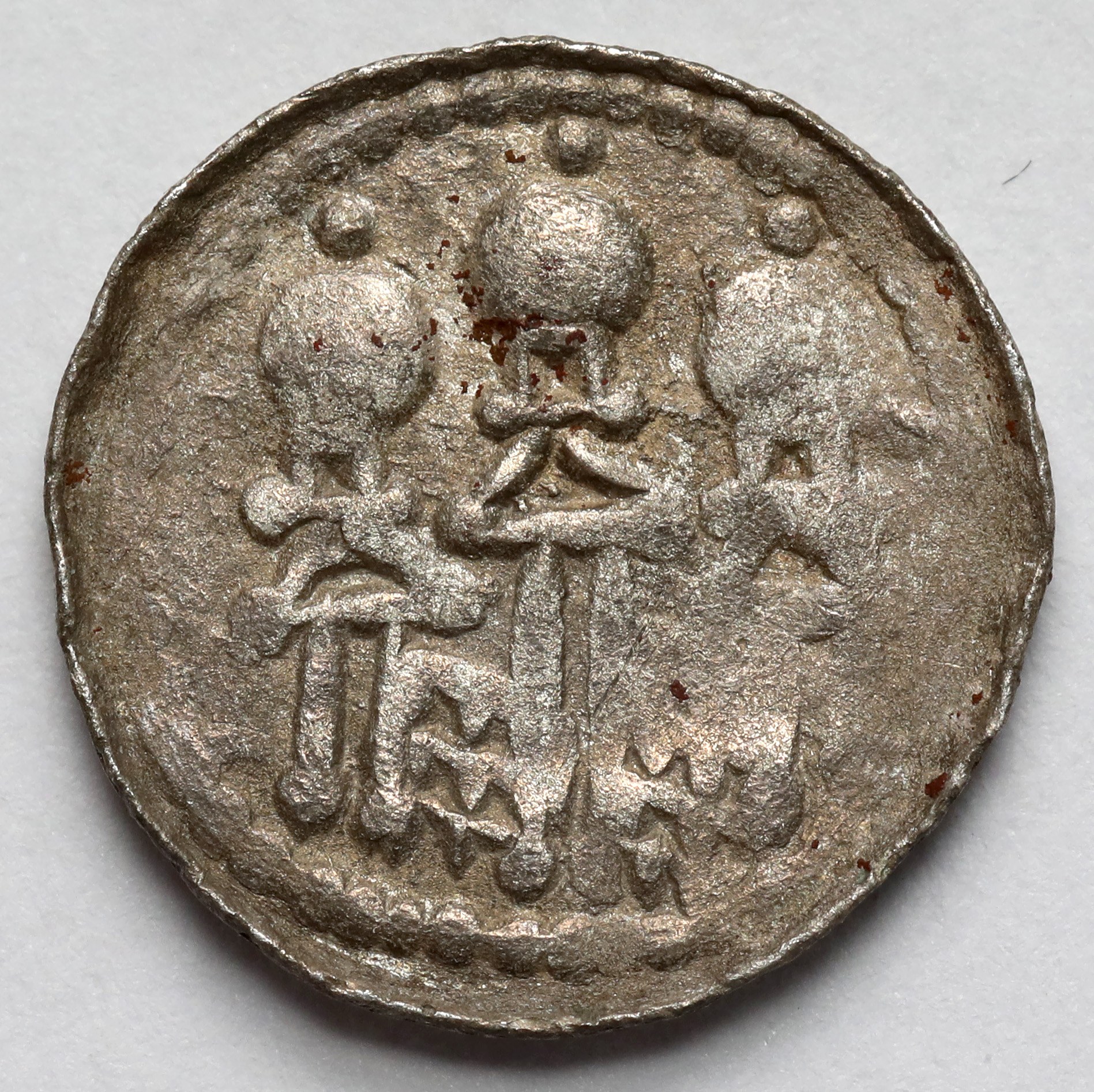 Rzadki denar królewski, wybity w latach 1076-1079, którego charakter podkreśla korona na głowie monarchy.