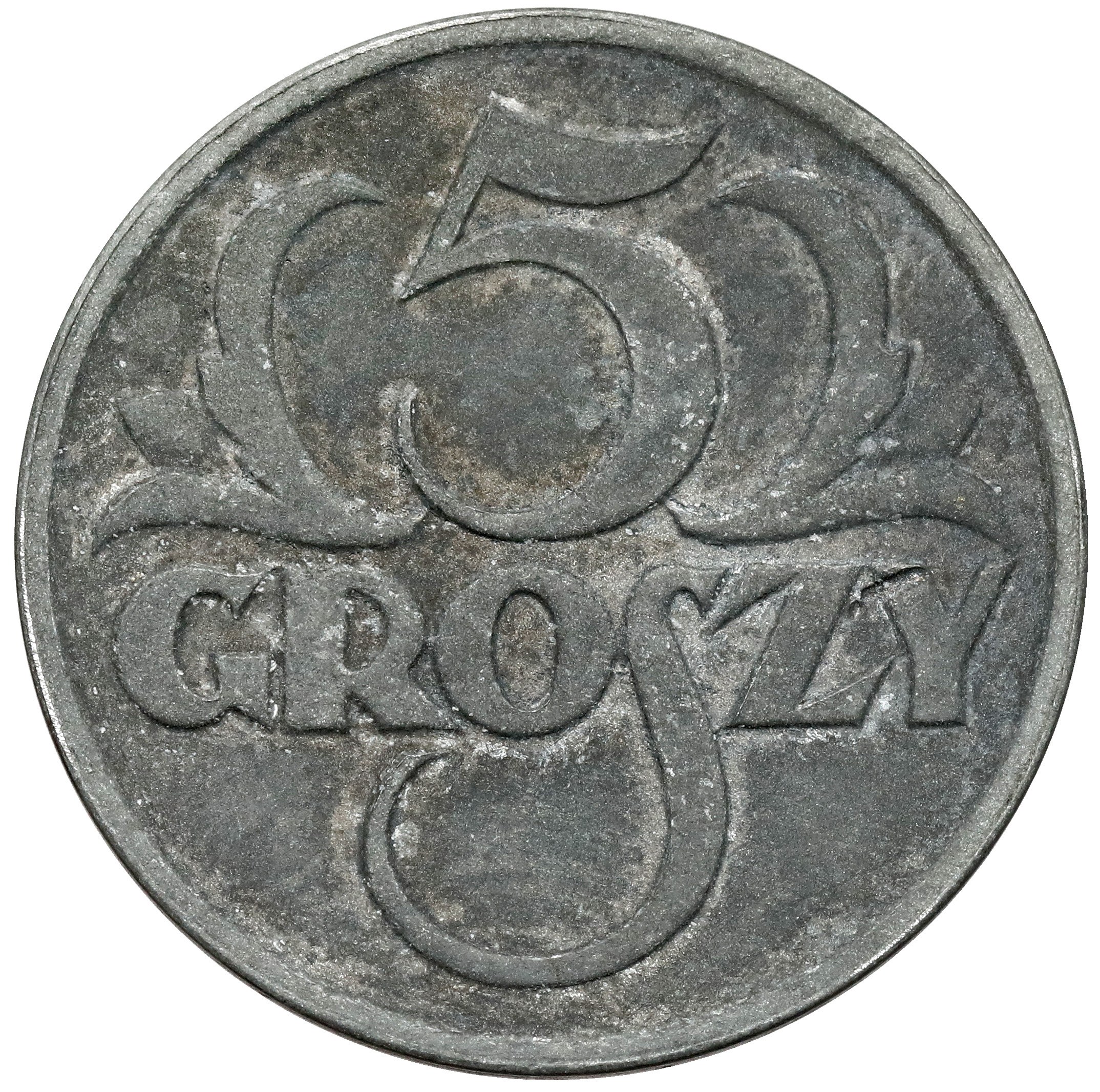 Odbitka w cynku pięciogroszówki okresu II RP.