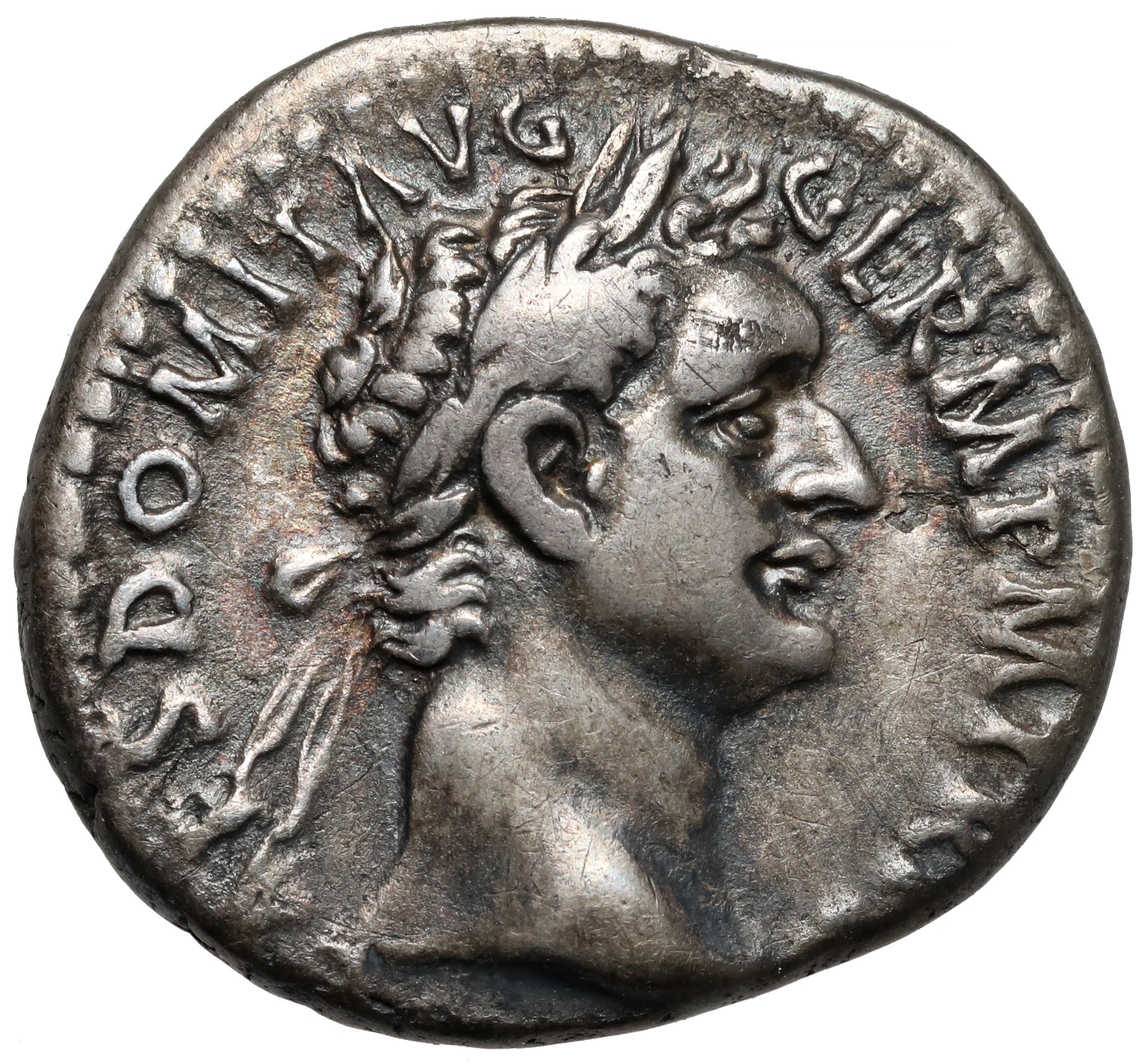 Awers: Popiersie cesarza w wieńcu laurowym, w prawo, w otoku legenda IMP CAES DOMIT AVG GERM P M TR P XII
