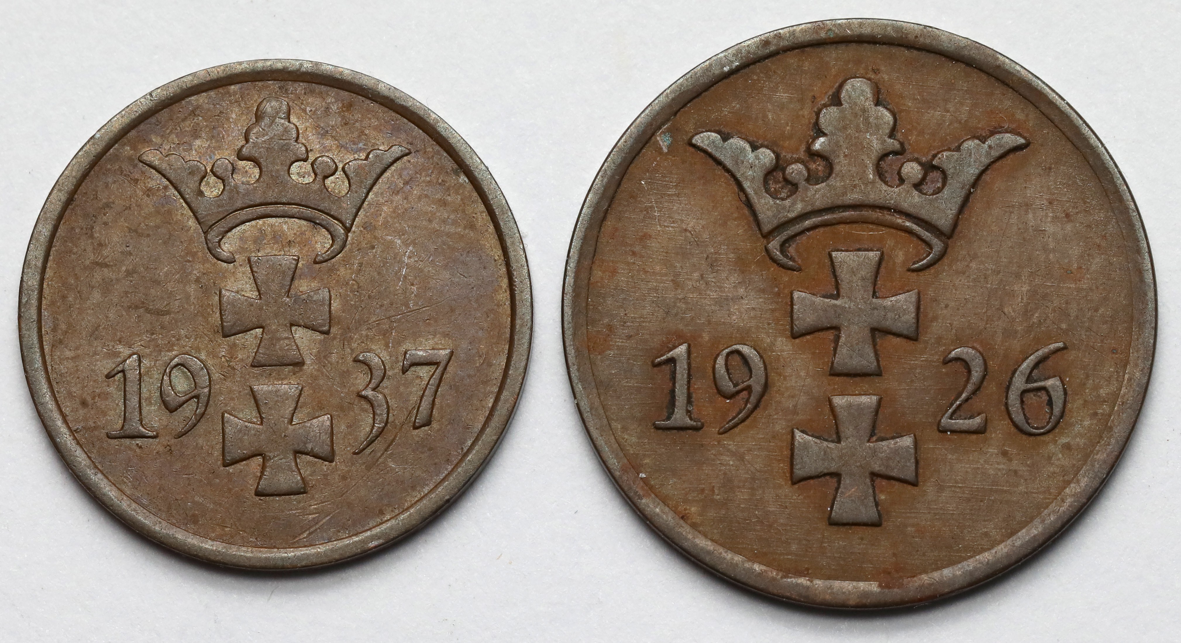 Gdańsk, 1 fenig 1937 i 2 fenigi 1926 - zestaw (2szt)