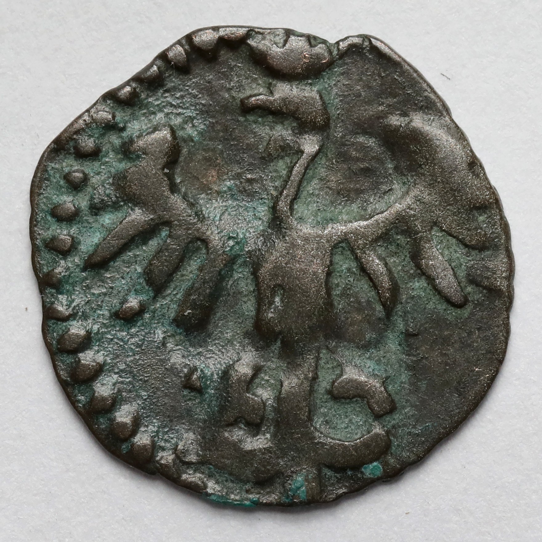 Denar ze znakiem O pod koroną, dawniej przypisywany panowaniu Olbrachta.