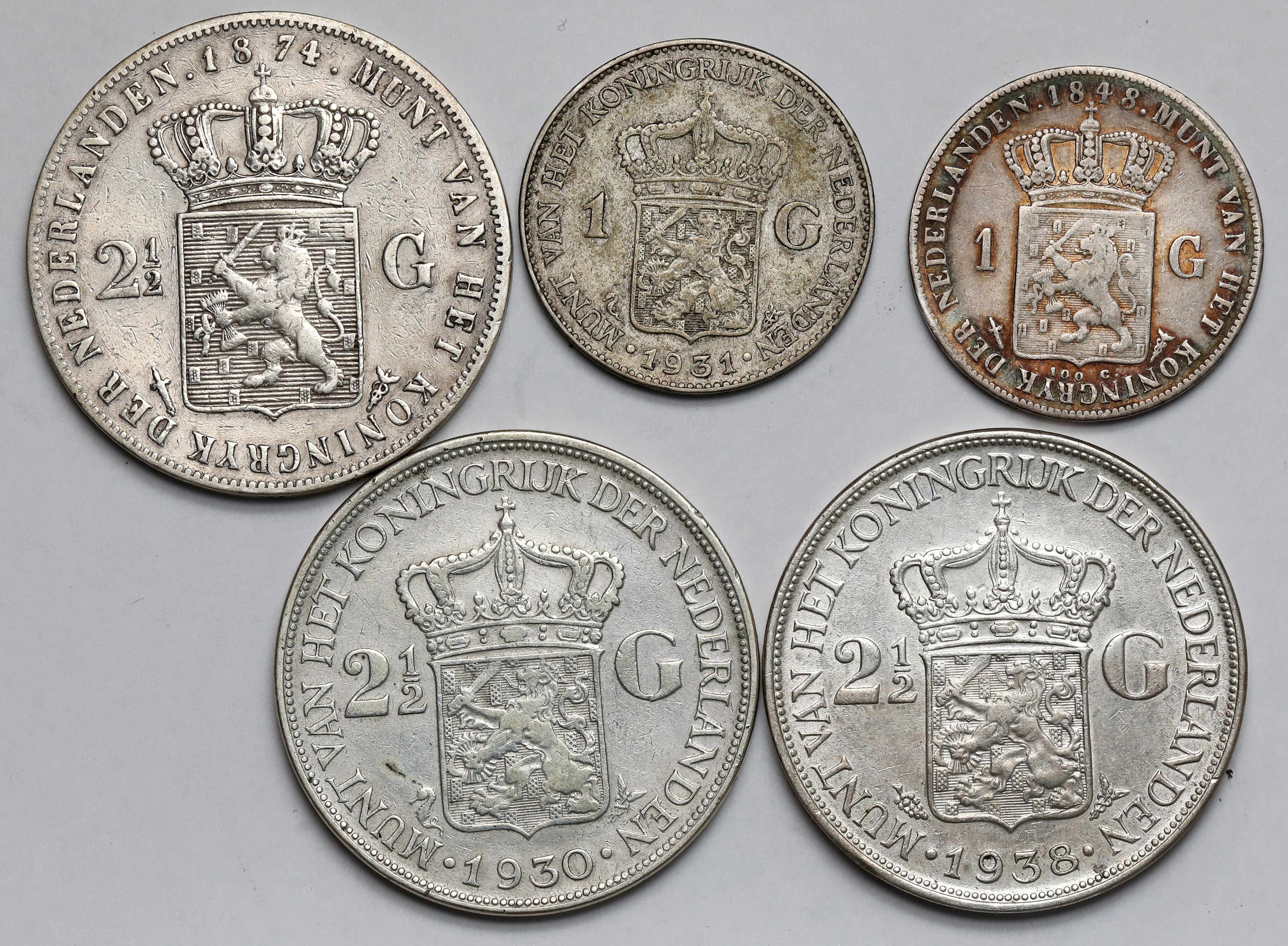 Niderlandy, 1 i 2-1/2 guldena - zestaw (5szt)