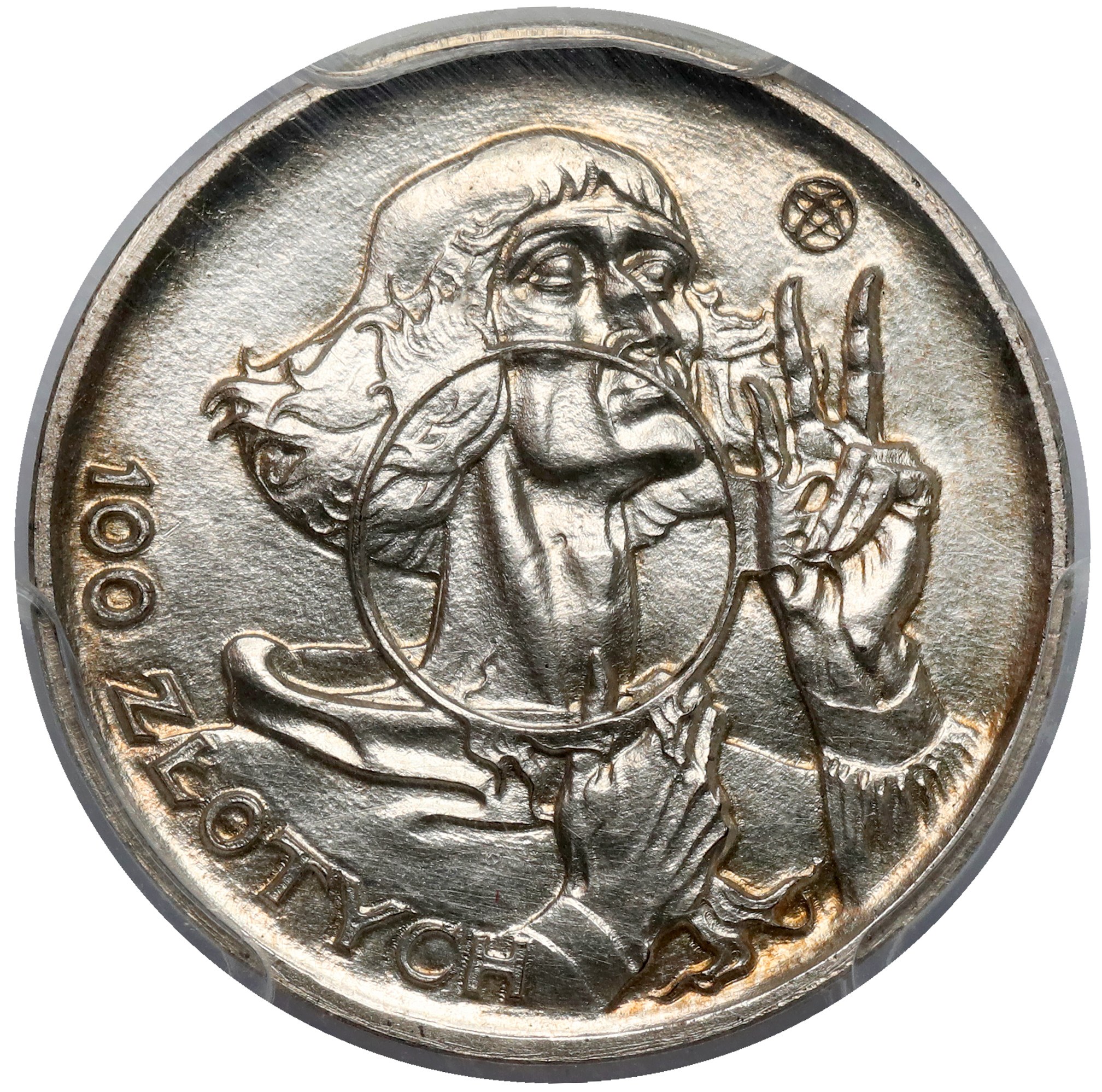 Na 100-złotówki wybrano projekt Stanisława Szukalskiego, z popiersiem Kopernika, który zajął 3. miejsce w tym konkursie. Doczekał się on realizacji w postaci monet PRÓBNYCH w dwóch wersjach: dużej (35 mm) i znanej dziś głównie z odbitek w brązie małej (20mm).