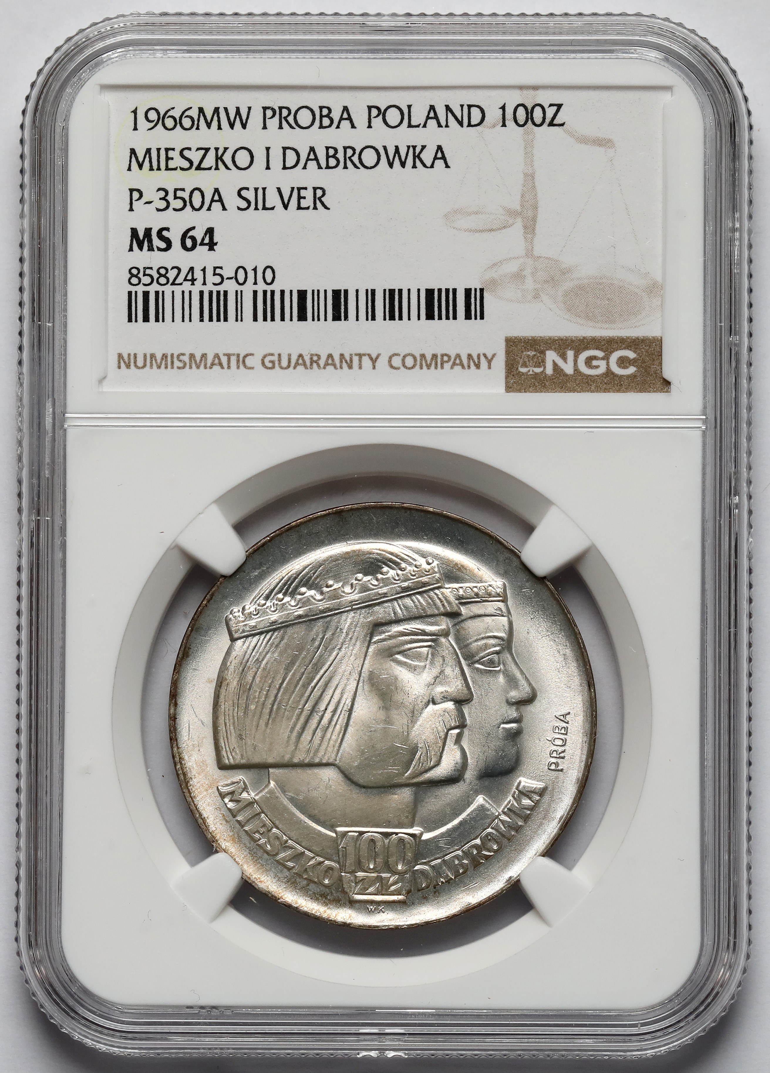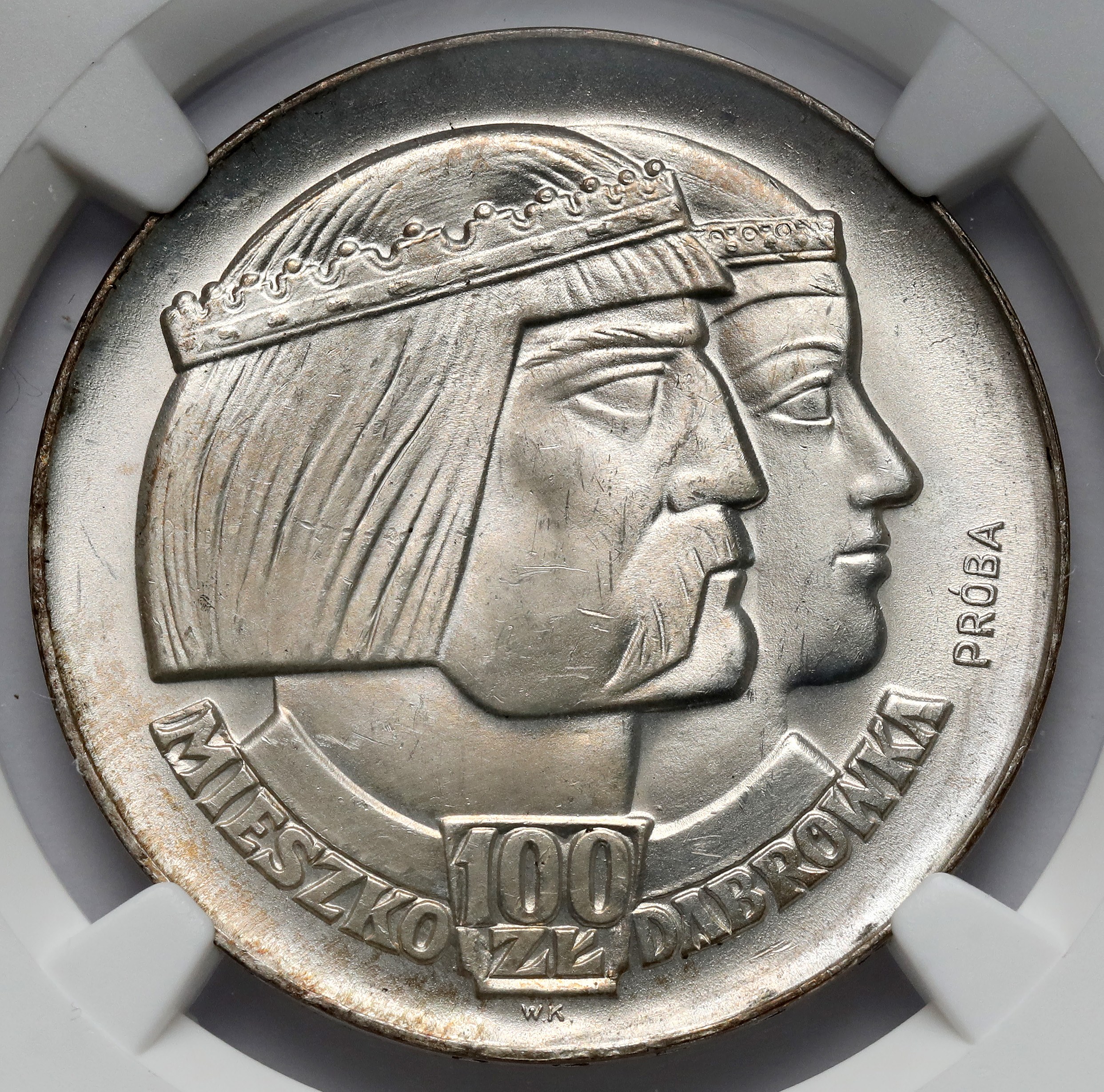 Próba SREBRO 100 złotych 1966 Mieszko i Dąbrówka - głowy