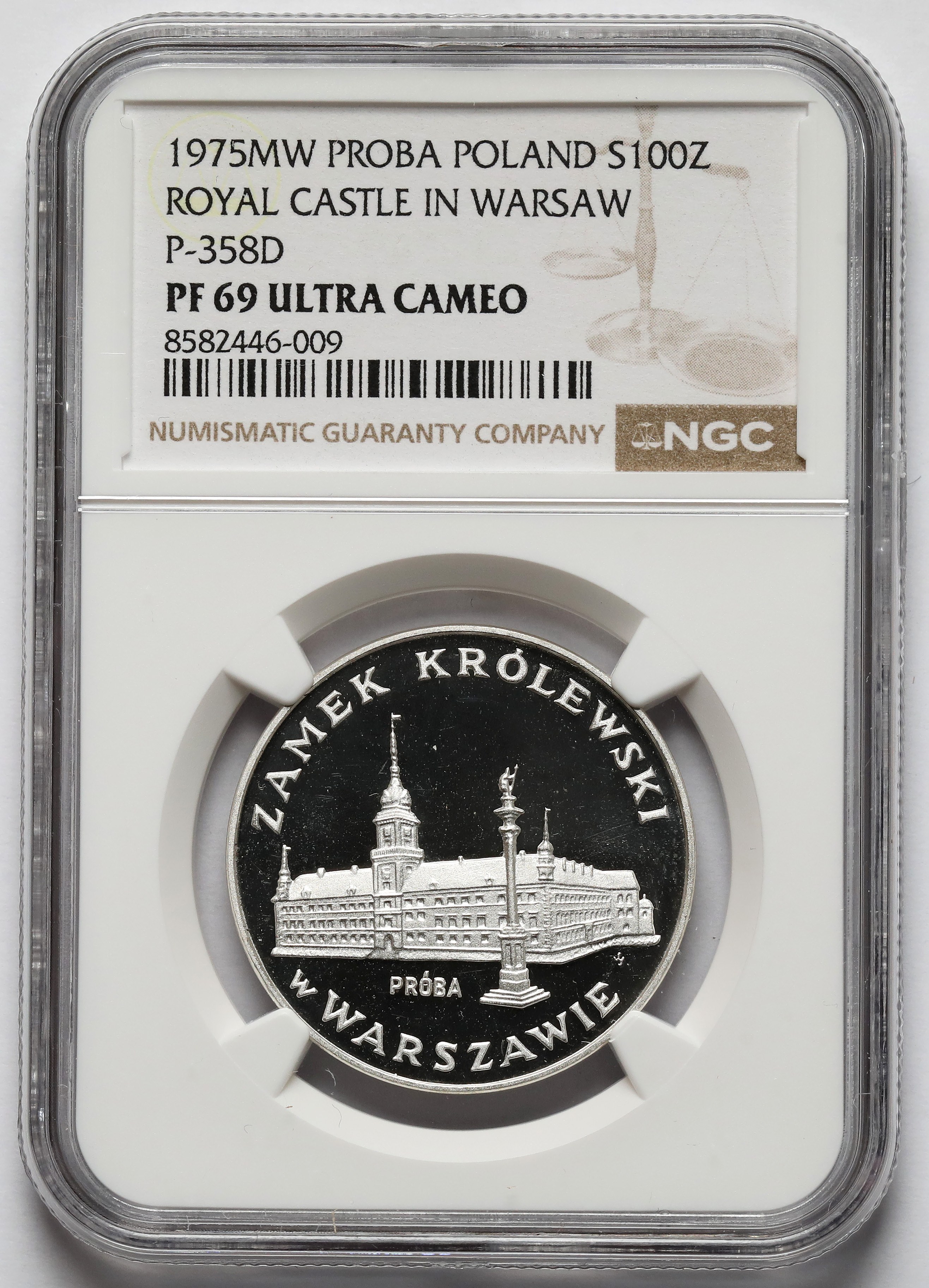 Próba SREBRO 100 złotych 1973 Zamek Królewski w Warszawie