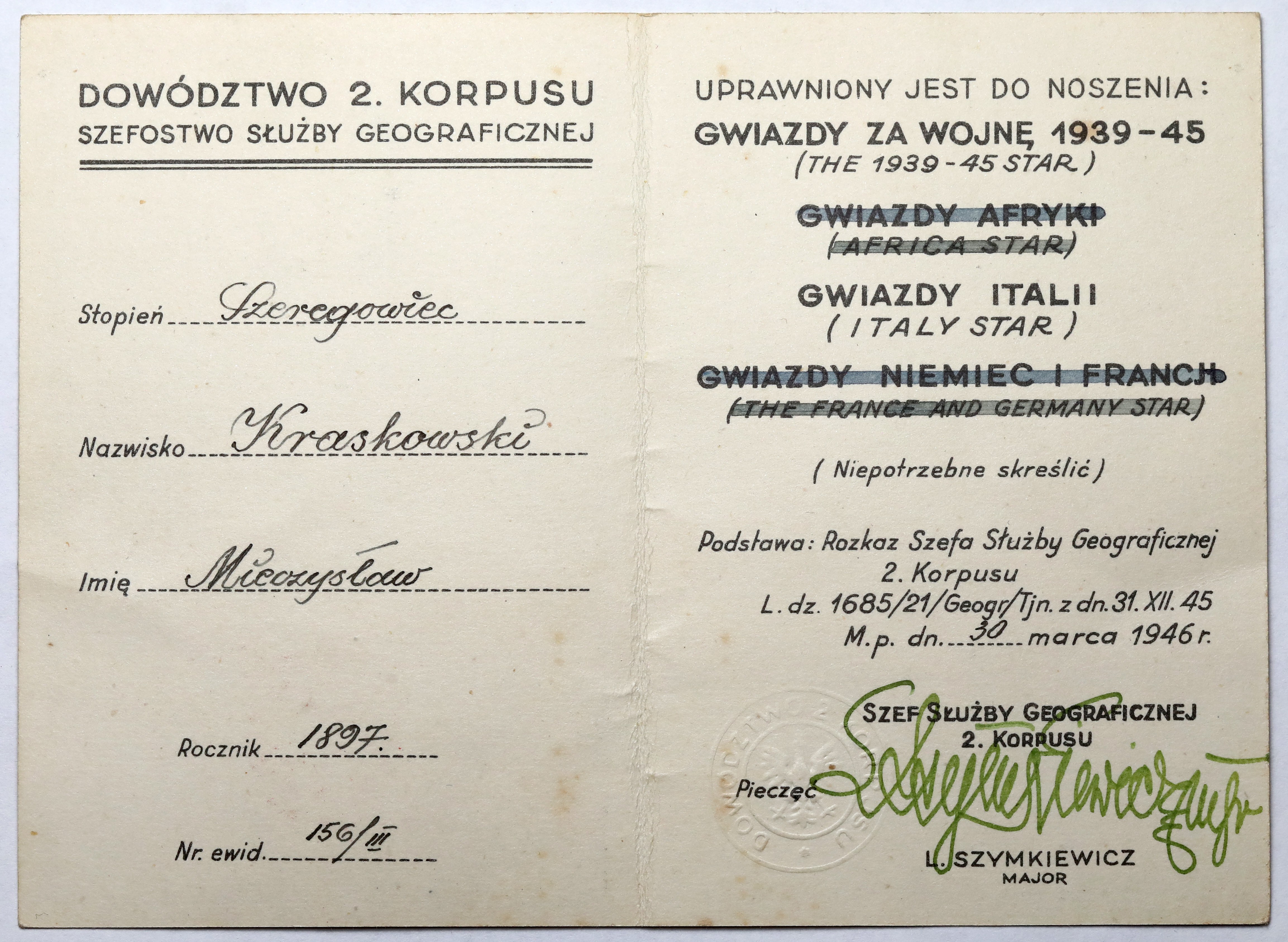 - Gwiazda za Włochy i II Wojnę Światową + legitymacja,