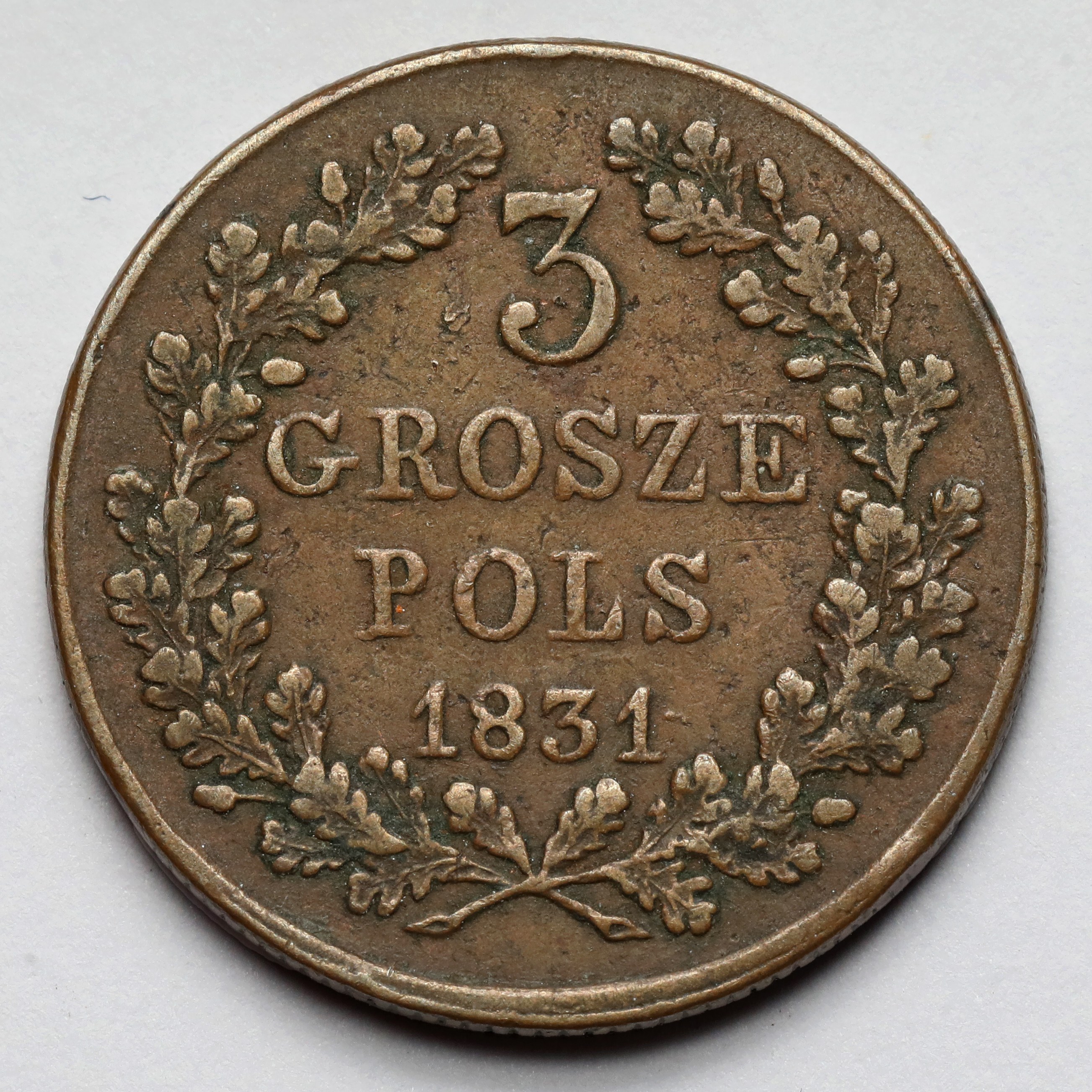 Powstanie Listopadowe, 3 grosze 1831 - łapy ZGIĘTE - rzadkość