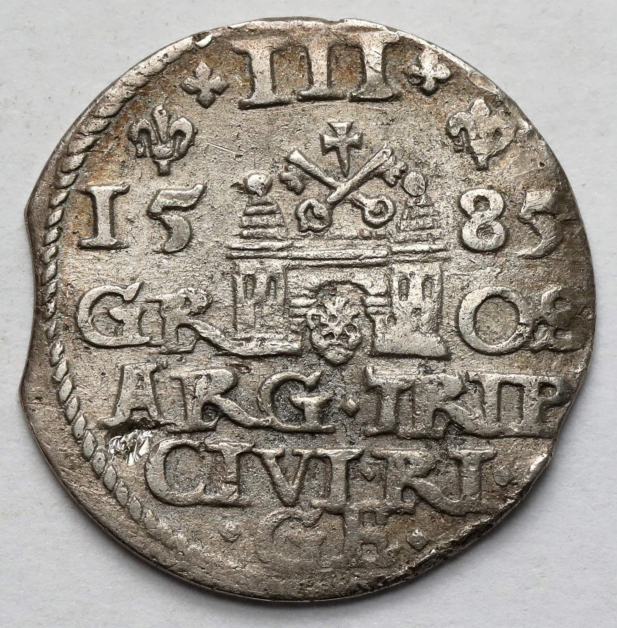 Stefan Batory, Trojak Ryga 1585 - wysoka korona
