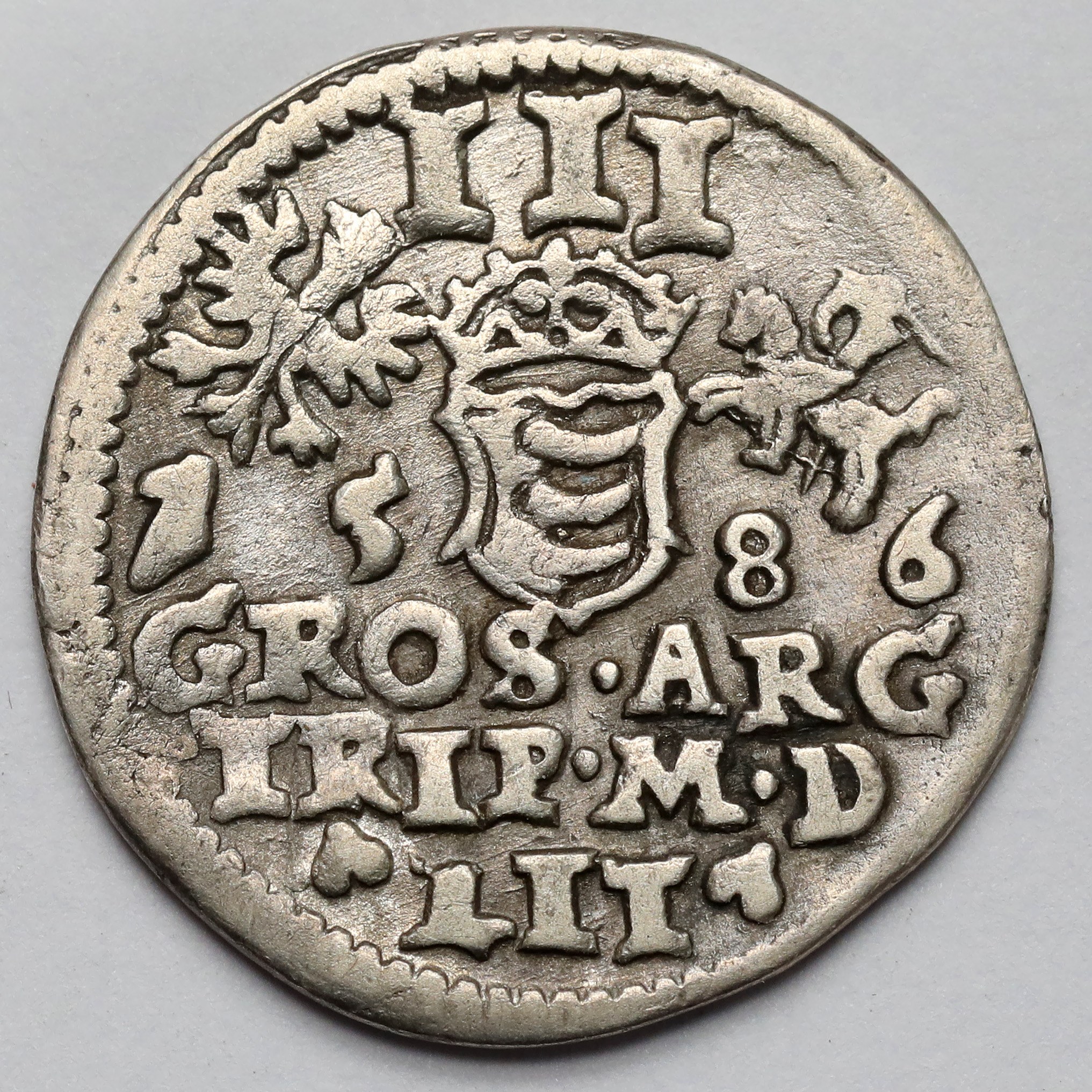 Ostatni rocznik trojaków litewskich Batorego, wybity w roku śmierci króla.