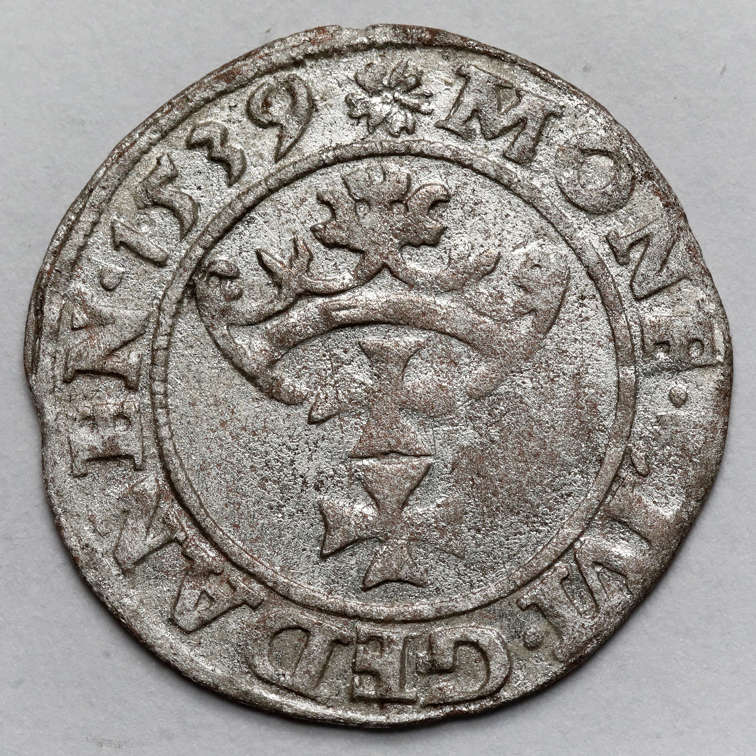 Odmiana z koroną wczesnego typu oraz hakami i rozetką rozpoczynającymi legendy.