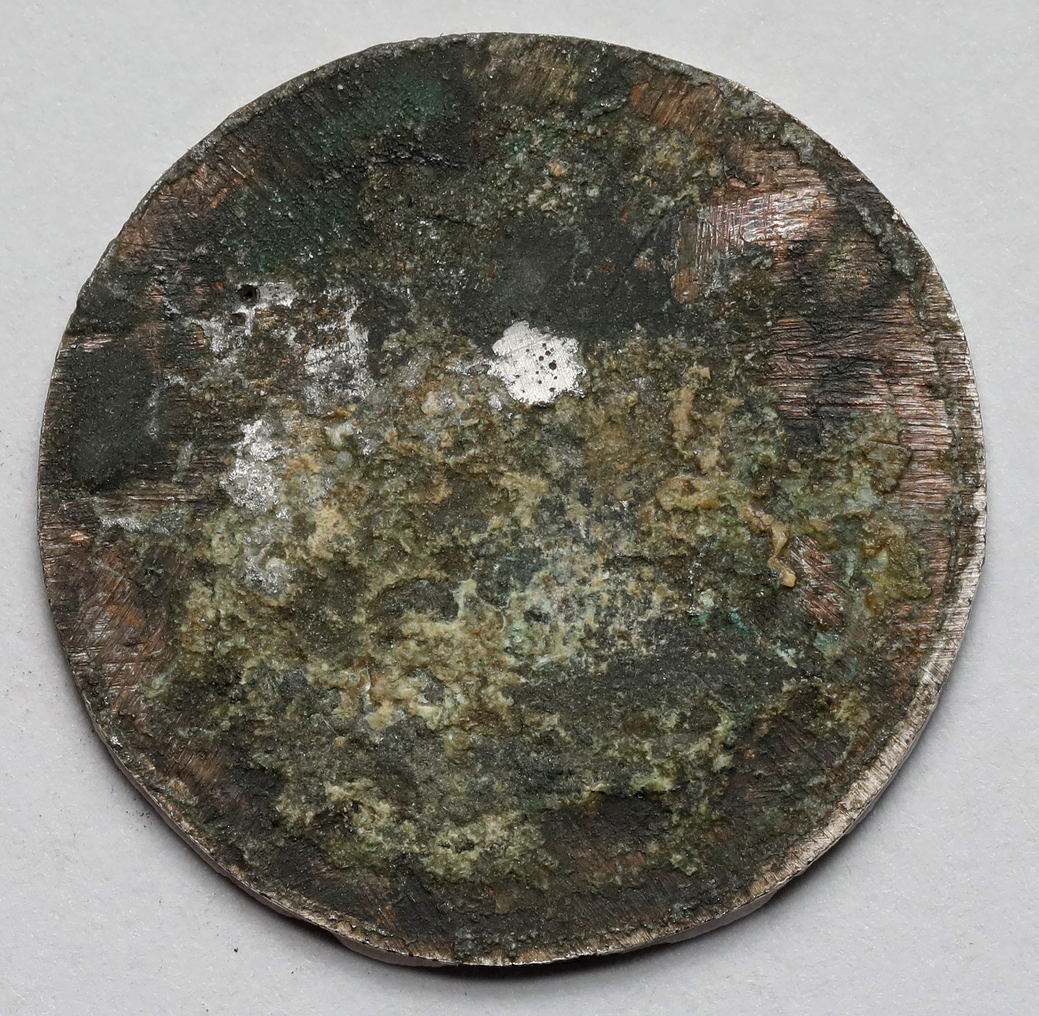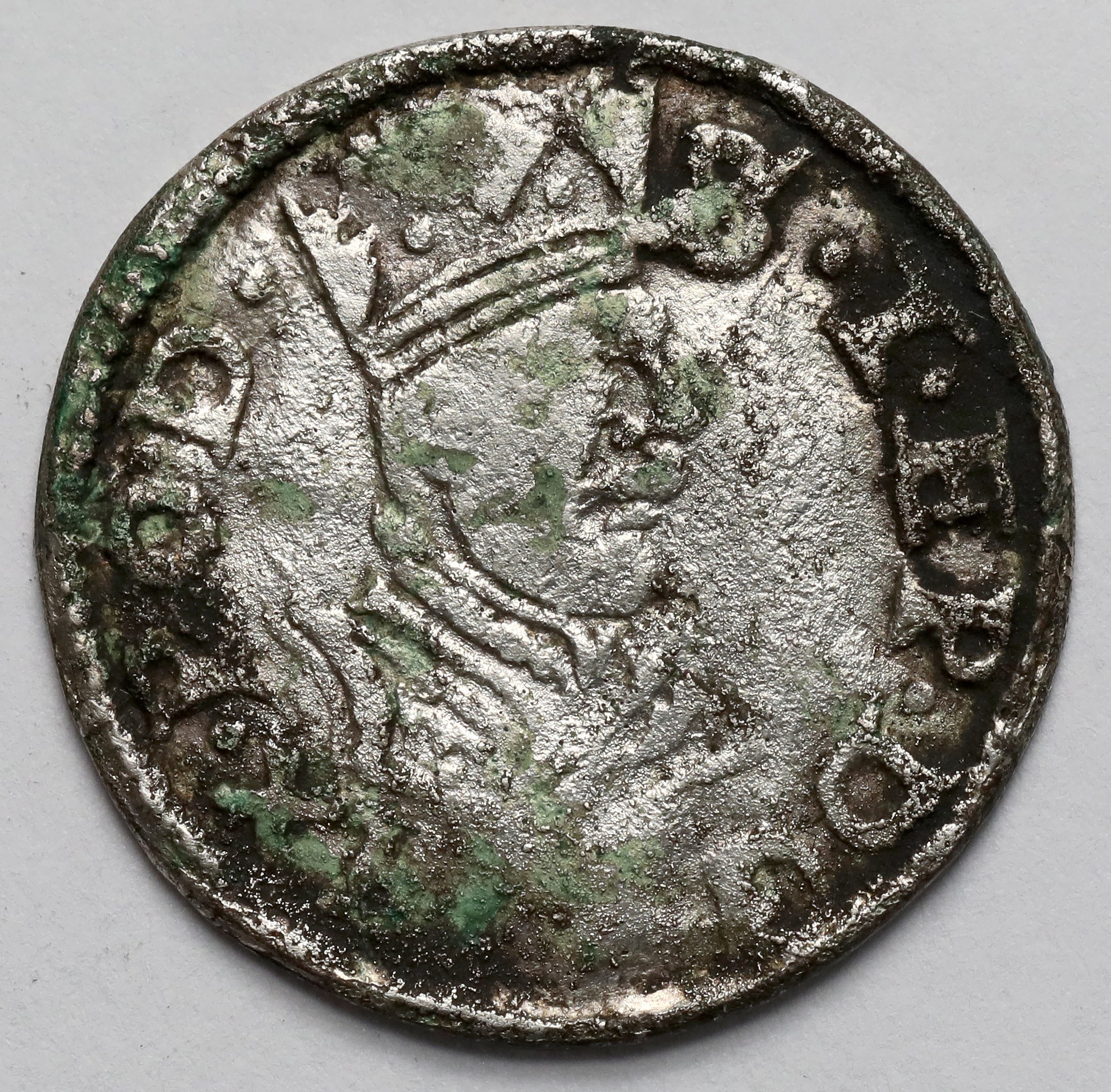Dawny, wypełniony galwanotyp awersu najprawdopodobniej trojaka mołdawskiego z okresu panowania Stefana Batorego.